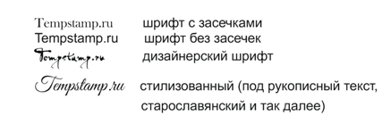 При заказе клише с текстом Вам необходимо указать название шрифта. Если в нашей библиотеке его не найдется Вам прийдется прислать файл требуемого шрифта (.OTF, .TTF, .FNT)