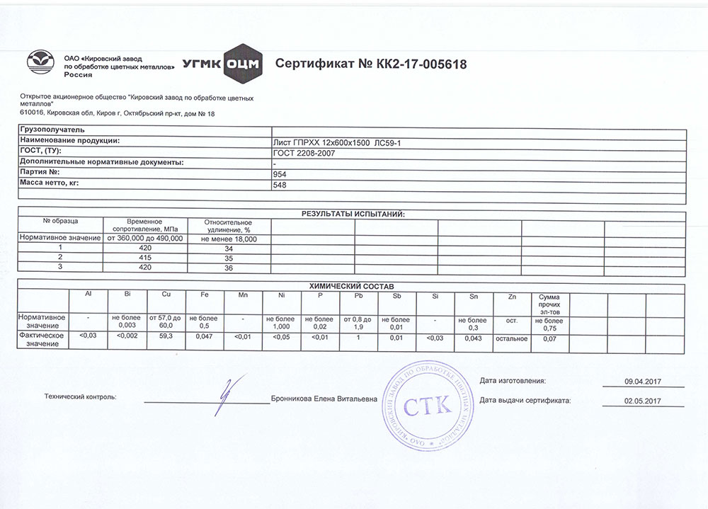 Клейма не контактирующие с продуктами питания мы изготавливаем из латуни марки ЛС59-1. Согласно ГОСТ 2208-2007 данная марка латуни содержит около 1% свинца.